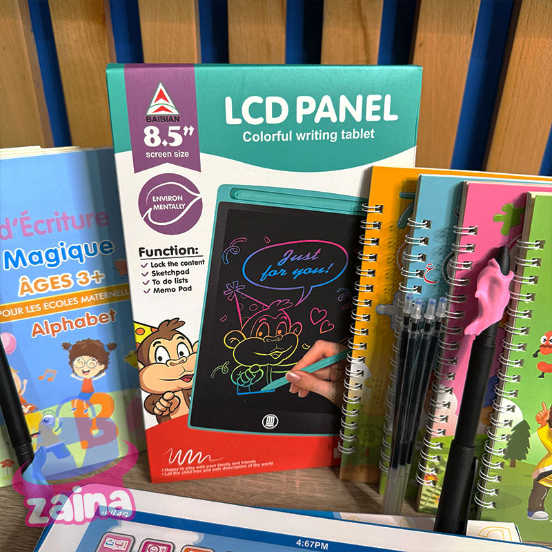 الميزة لي فهاد الكتب هو ان اي حاجة كتبتيها فيهوم كتمسح بعد دقائق او هاكا عمر هاد الكتب يعمرو او ترميهوم بسبب انهم عمرو بالكتابة لوحة الكترونية LCD حماية العين: لا تحتوي شاشة LCD على ضوء أزرق أو إشعاع، مما يحمي العينين ويكون آمنًا ومريحًا بعد الاستخدام لفترة طويلة. وظيفة المسح والقفل: يحتوي WordPad على وظيفة مسح بزر واحد ووظيفة مسح القفل لمنع مسح التسجيلات المهمة عن طريق الخطأ