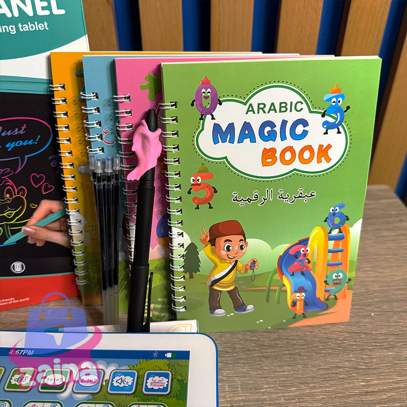مجموعة العاب تعليمية ( بابا مشمش + 8 كتب سحرية 20 عمارة + لوحة LCD )